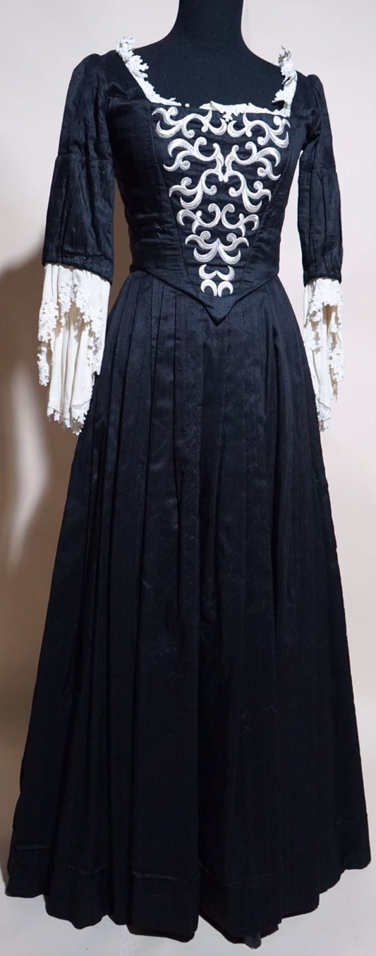 Gown, 18th c. Black Embroidered