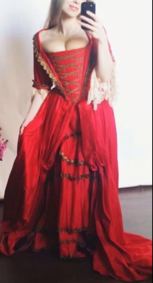 Gown, Renaissance Tudor Royal Nobility Red - XS