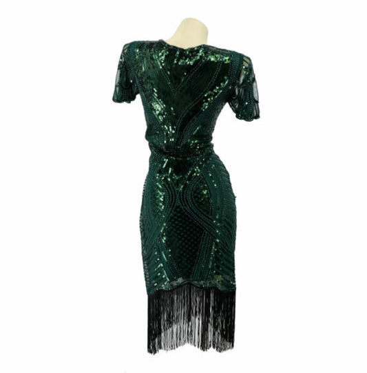 Dress, Flapper Beaded Fringe 20's Green