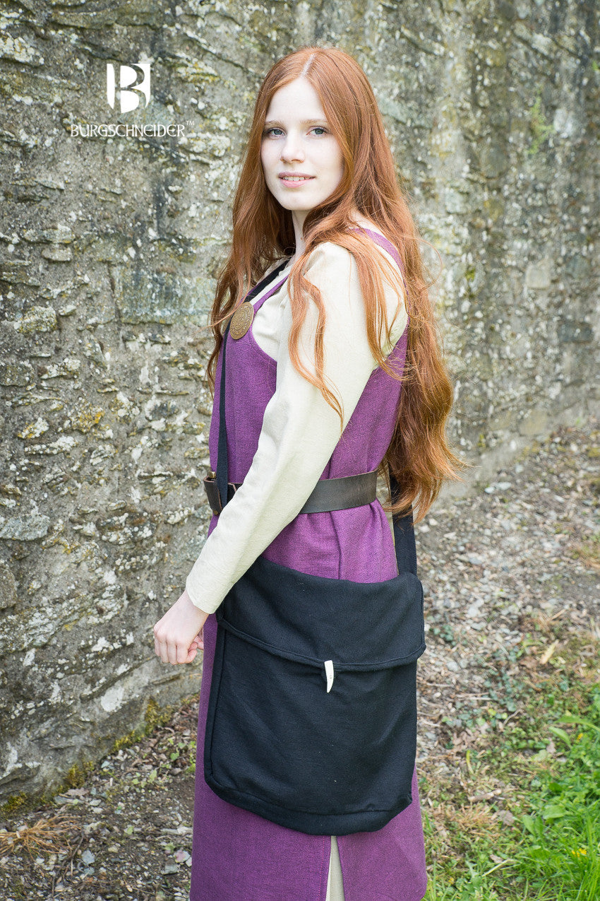100% cotton satchel side bag with ivory button. The heroic clothing for medieval reenactment and live action role play. Event, Festival, Convention, Stage, Film, and beyond.