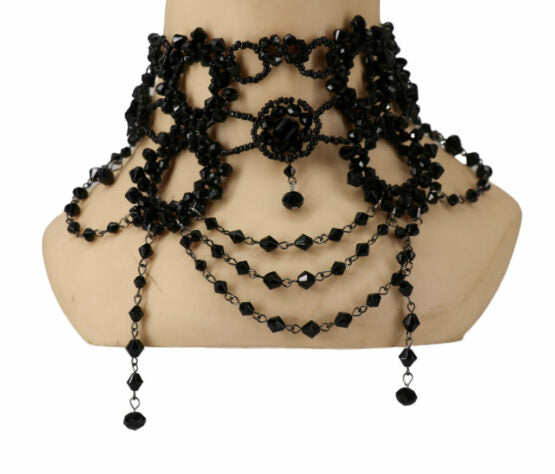 Multi layer full beaded Victorian choker with double loops and drop beads, black glass beads, Great for Venice is Sinking or any Venetian Masquerade Ball