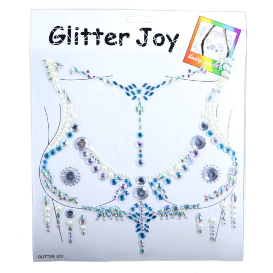 Clear with BLUE rainbow teardrops, diamonds and circles rhinestones.
