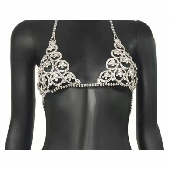 Rhinestone bra top overlay. Circle shapes with a big gem in the center of each one.