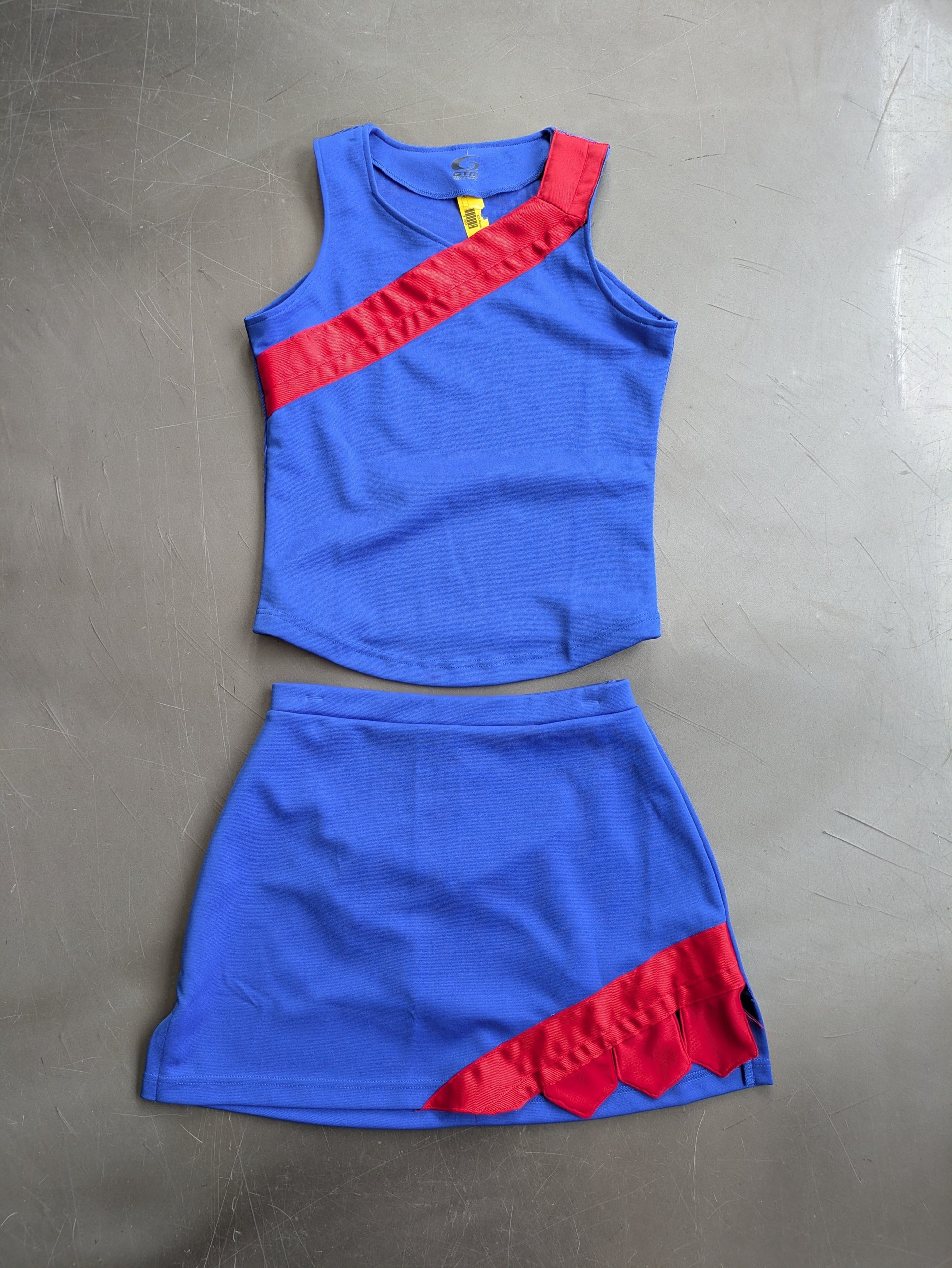 Authentic cheer 2 piece skirt and tank top. 34" Chest, 16" Length skirt, 28" waist. $25 rent