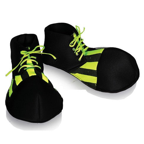 Soft bottom clown shoes in bright colors with a tie closure. Oversized
