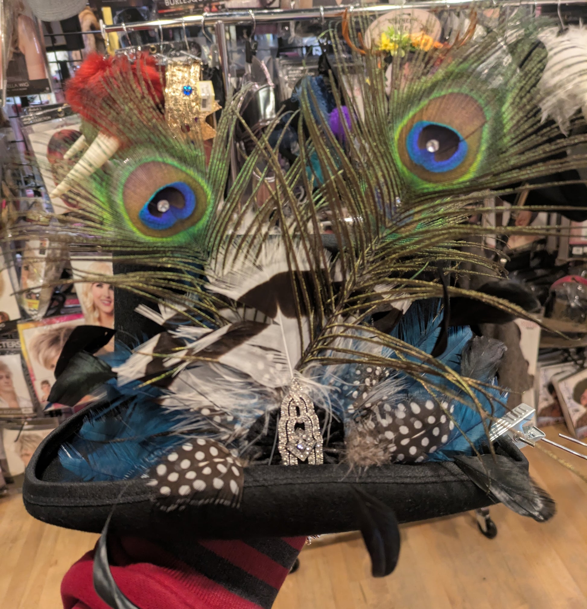 feathers on a clip to attach to hat, or wear as fascinator. Handmade Vashon Island. Art piece. Art Deco Style