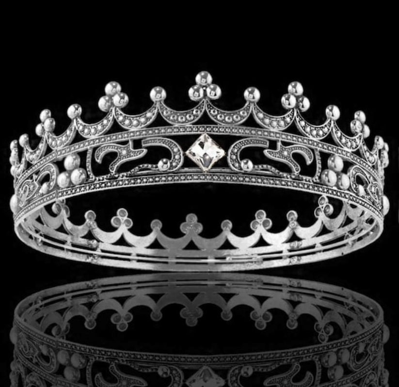 All metal full wrap around crown with a smaller profile. Perfect for a prince costume. At the center it has a small jewel. $10 rent