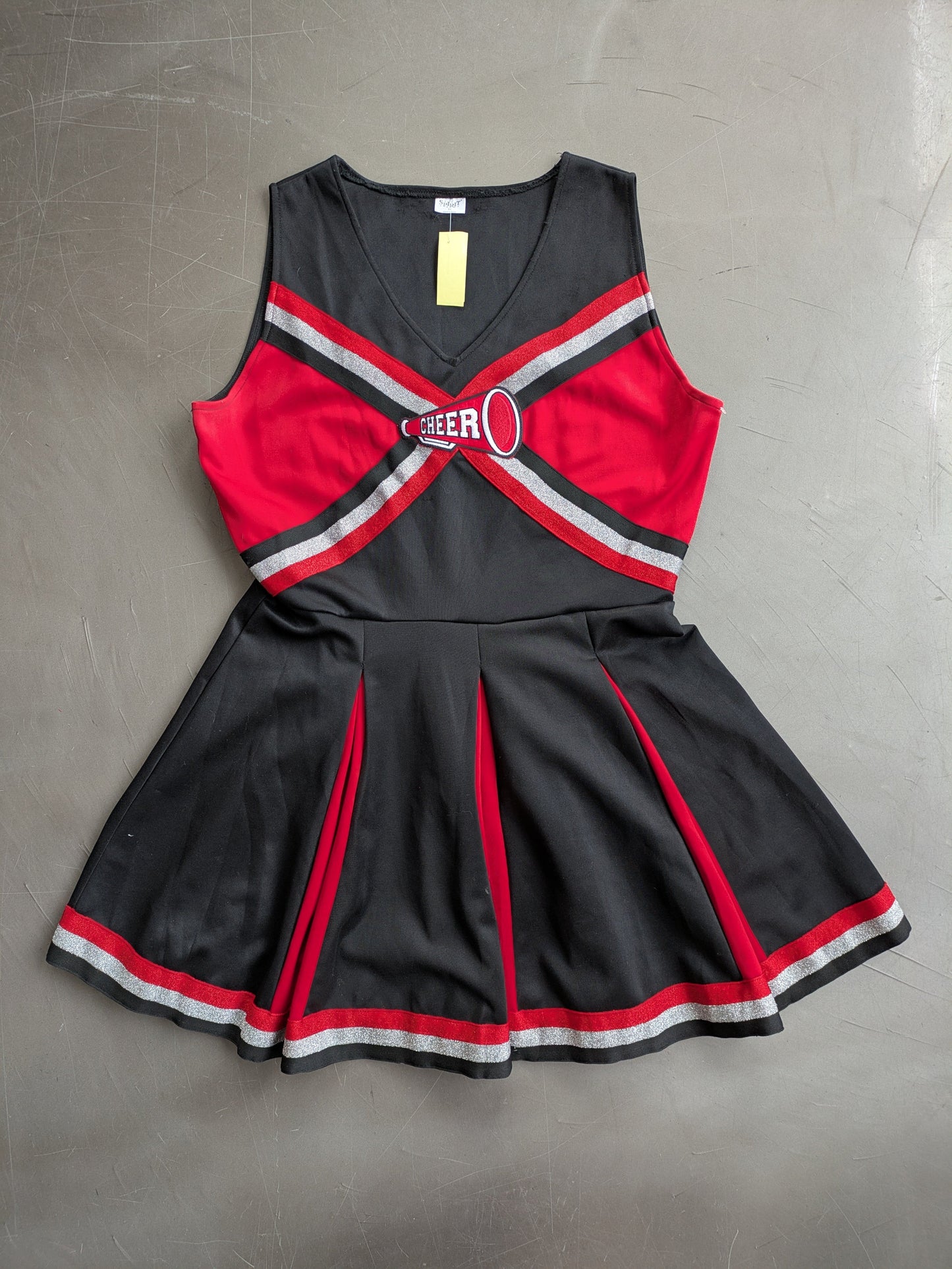 Costume cheer dress. Short sleeves and short skirt. 44" Chest, 17" Skirt Length, 34" Waist. $20 rent