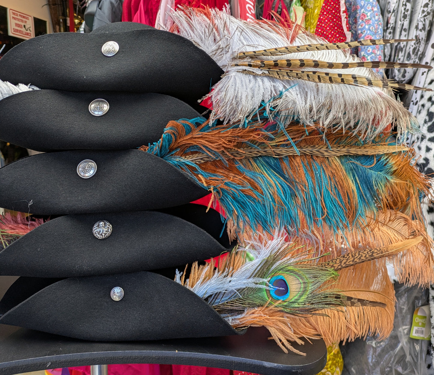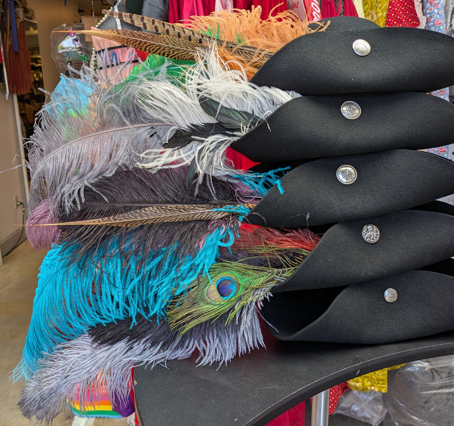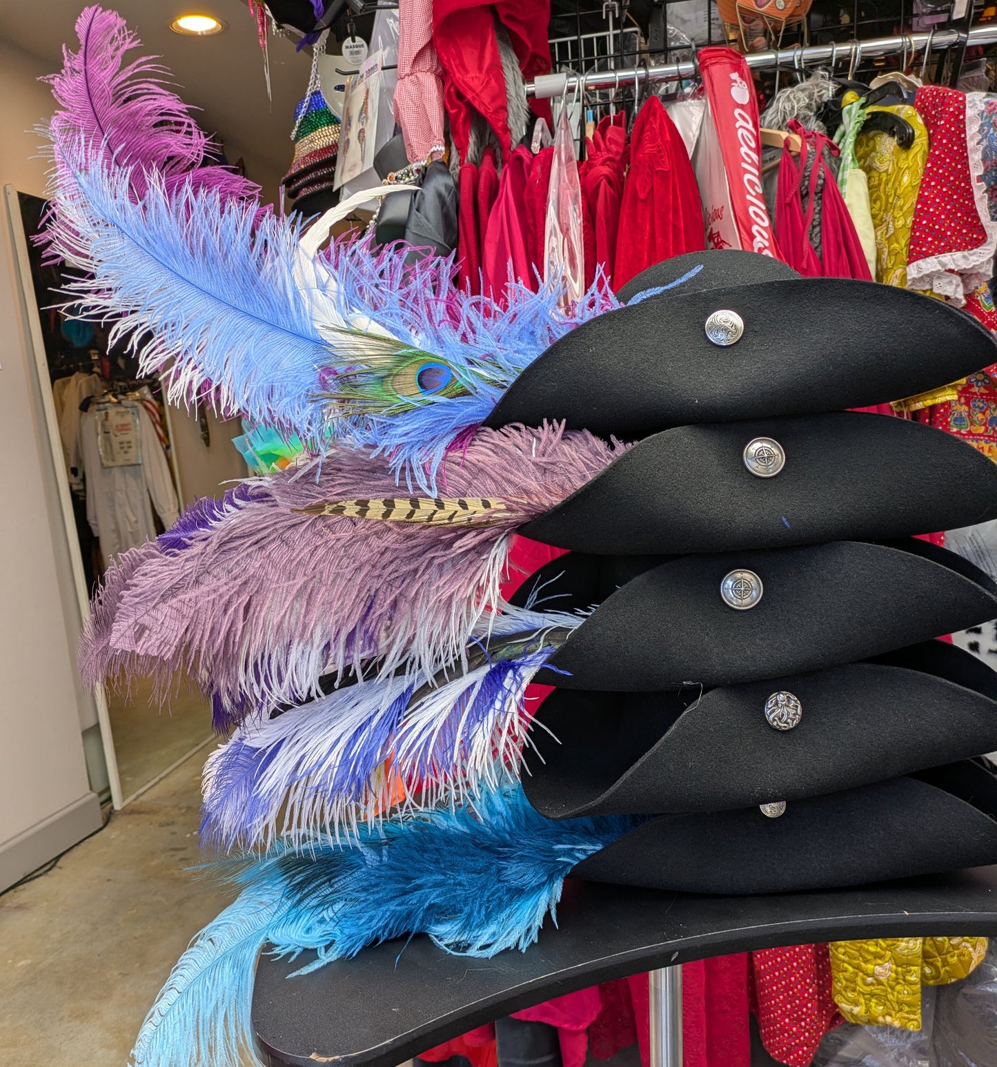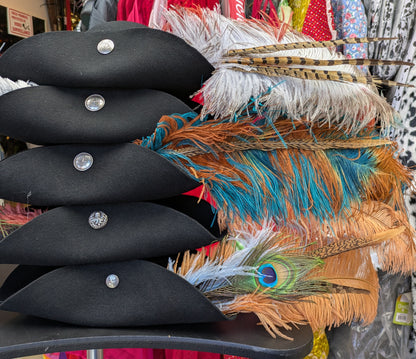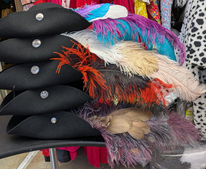 Cluster of carefully assorted feathers to make beautiful hat decorations. Ostrich feathers with smaller feathers for texture and depth. Perfect for a pirate's tricorn hat or a Marie Antoinette styled 18th century wig.
