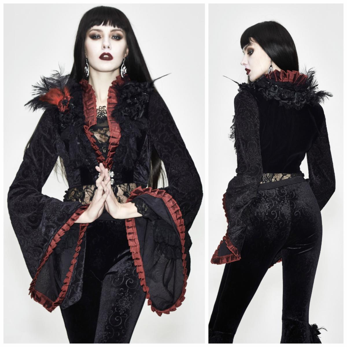 Perfect wrap to wear over your Masquerade Ball gown, or spice up your club look, Gothic velvet brocade Coat with bell sleeves. Also works as women's adult vampire or witchy costume. Eva Lady label