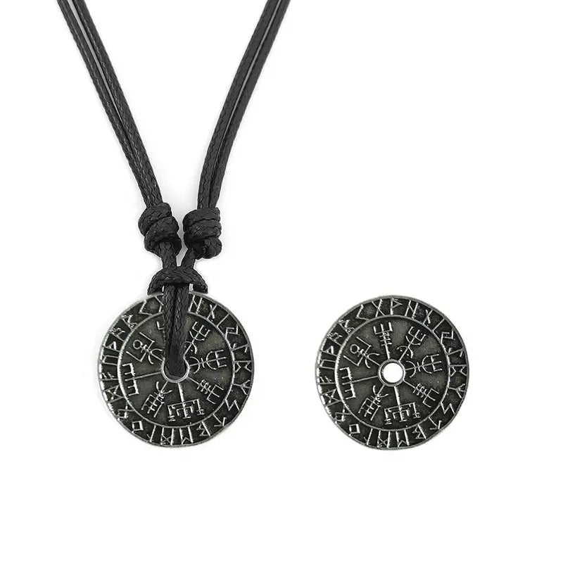 Viking leather necklace with silver coin pendant antique silver, $5 rent, 42639