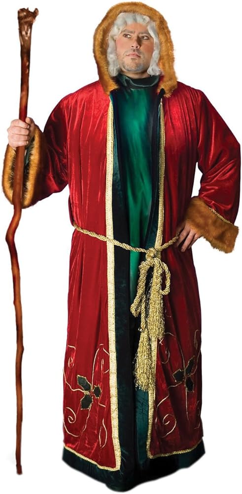 Old World Santa Father Christmas Crimson Red, Emerald Green, Gold - INC Tunic, Jacket & Rope Brown Faux Fur Trimmed