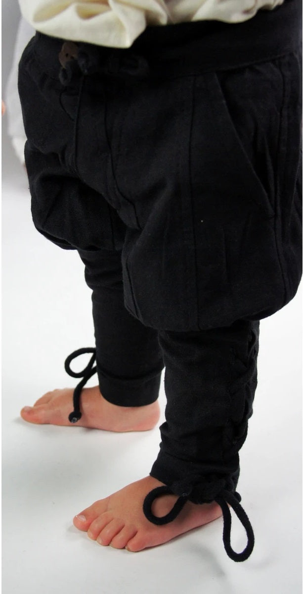 Black viking pants for children. Puffy thigh with lace up calf. 100% cotton. Medieval, $15 Rent, 41887