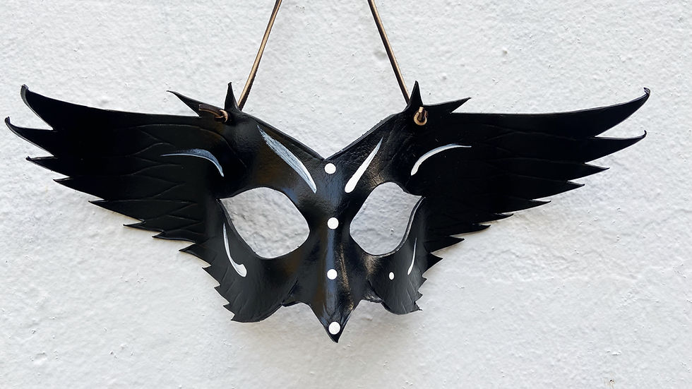 Cow leather masks painted with the best leather paints. Check out his mask gallery - it is always up to date! https://www.jamescoreyart.com/mask-gallery