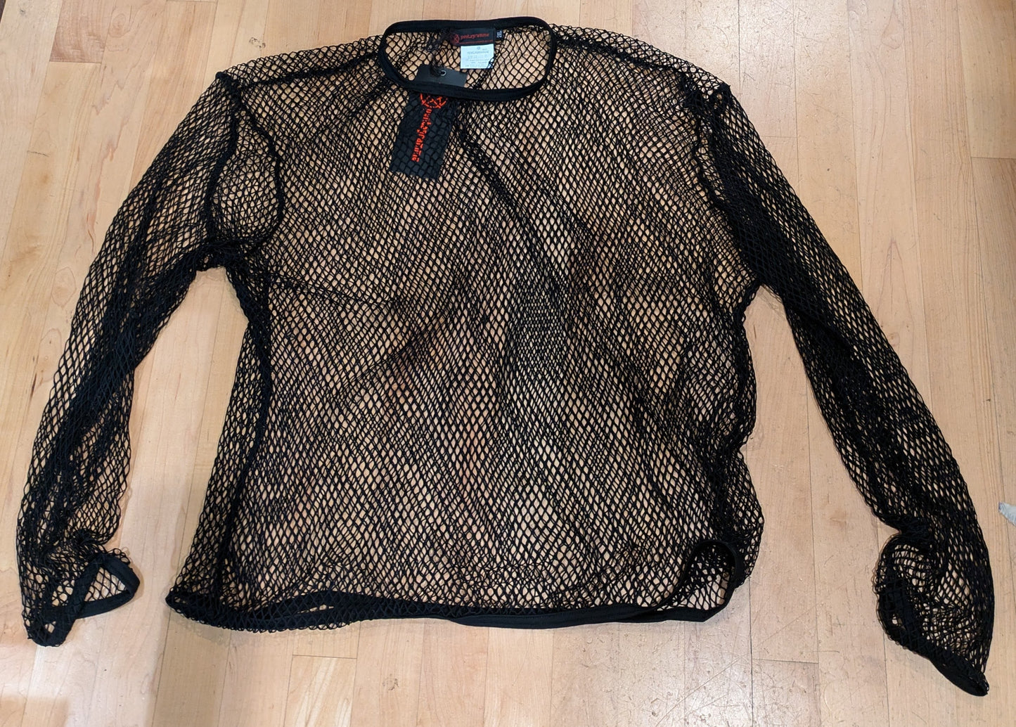 Long sleeve wide fishnet shirt. With a cotton edging. Perfect for any 80's rock star.