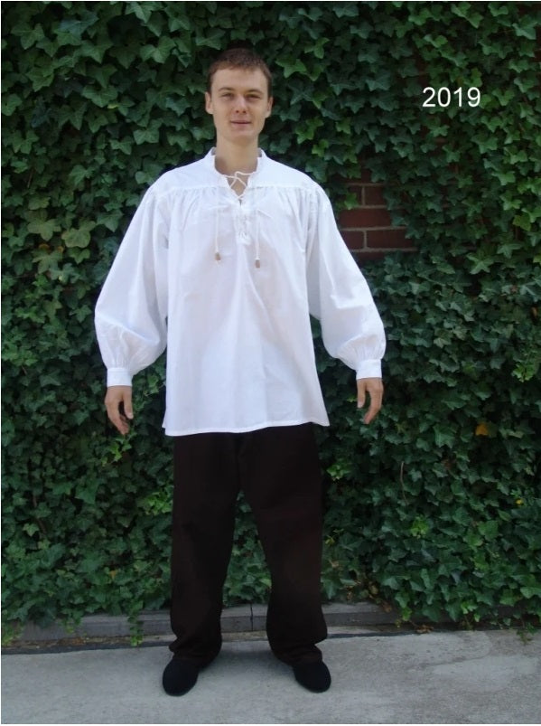 White Plus Sized Stand up collar lace up front shirt with wood beads. Single button on cuff, $15 rents, 41937