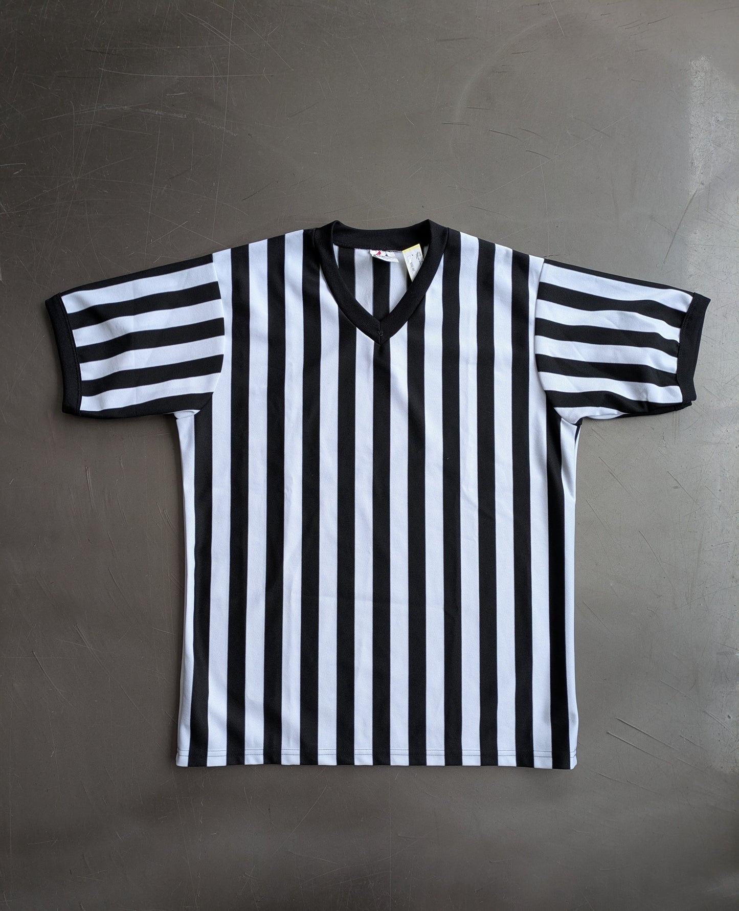 Authentic black and white vertical stripe t-shirt. 44" Chest