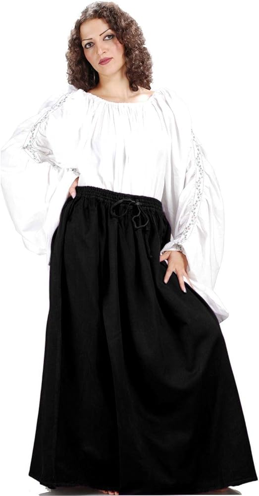 Black. Eleanor Skirt is made from thick & rich glazed Cotton fabric. The elaborate width & attractive colors make it a must have for peasant & wench outfit. Elastic & drawstring has been provided at waist for easy & comfortable wearing.