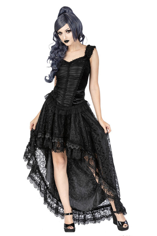 Black Tulle high low skirt with lace overlay and satin lining. layered tulle. steampunk, witch, victorian