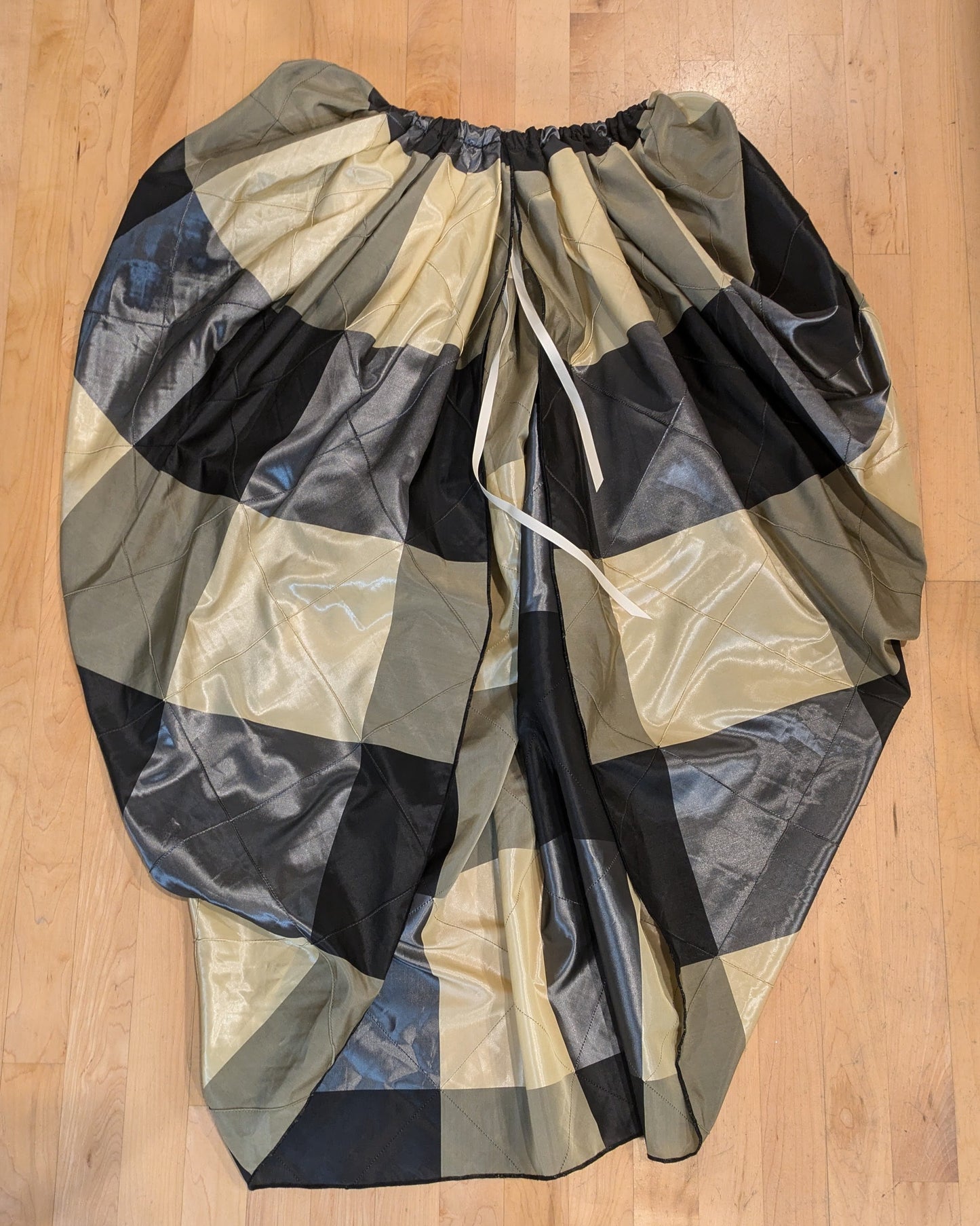 Damsel in this dress branded split front over skirt. Floor length bustle with a split front to give a show of your bloomers or underskirt. $20 rent