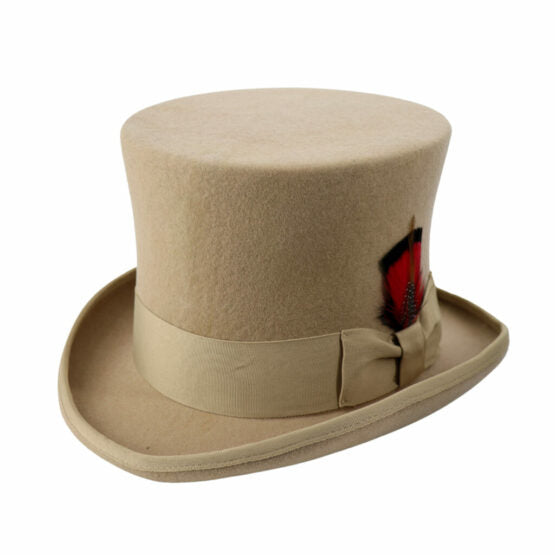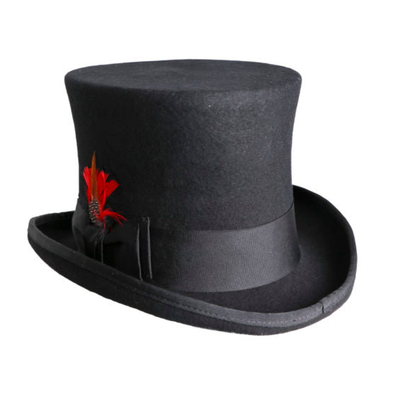 100% wool felt, 6 inches high plain hat with ribbon red satin lining. $15 rent