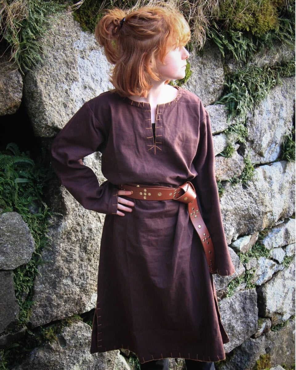 Brown cotton tunic with long sleeves. embroidered edges. good for vikings, $15 Rent, 41827