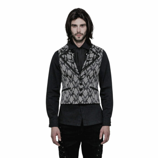 Jacquard Brocade Button Up Closure, 2 Lace Lined False Pockets Perfect for adult men's masquerade ball costume. Punk Rave Label.