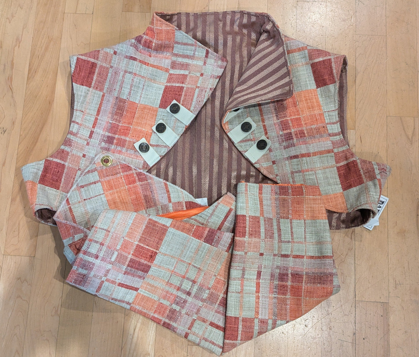 Damsel in this dress brand cropped vest or shurg with detachable sleeves.. Over the shoulder sleeveless vest with a stand up collar and a military like button details on the chest. $35 rent