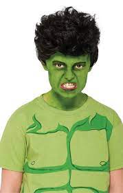 marvel's hulk wig for child. Black, spiky, messy, short. Avengers